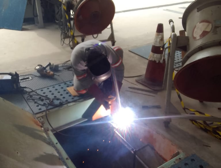 ✔ Soldagem e caldeiraria – Fabricação e instalação de estruturas metálicas, suportes, dutos e tanques.